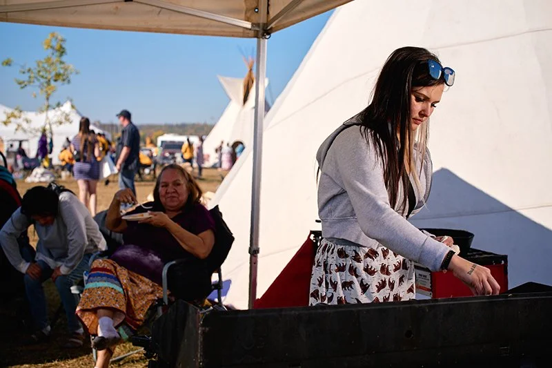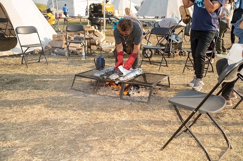 Friday, Saturday, and Sunday of the Festival continued on with community members from all five First Nations welcoming festival goers to the Traditional Village presented by Fort McKay First Nation. The communities donated traditional food, and skilled members butchered, prepared, preserved, and cooked delicious samples for all attendees to try.